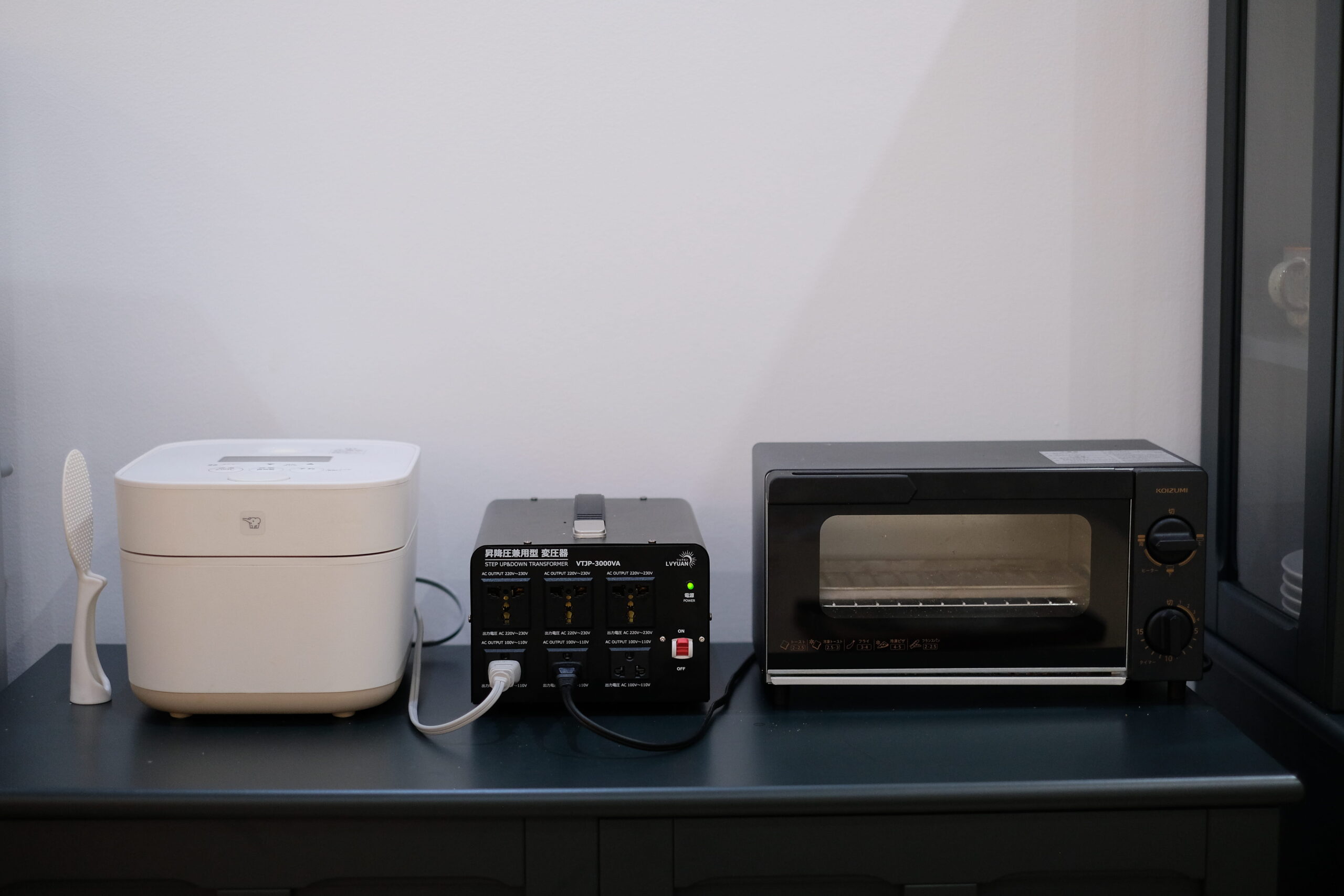 日本の炊飯器やトースターを使う場合は、変圧器が必須です。